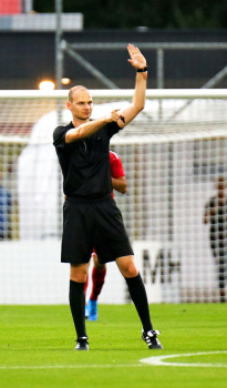 09.08.2019, xxx, Dreieich, Fussball, Hahn Air Sportpark; Lotto Hessenliga, Saison 2019/2020, SC Hessen Dreieich gegen 1. Hanauer FC; Johannes Frohnapfel (Schiedsrichter);