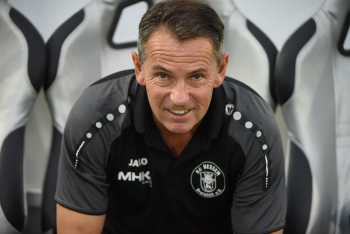 09.08.2019, xxx, Dreieich, Fussball, Hahn Air Sportpark; Lotto Hessenliga, Saison 2019/2020, SC Hessen Dreieich gegen 1. Hanauer FC; Kopfball von Michael Fink Trainer (FC Hanau 93);
