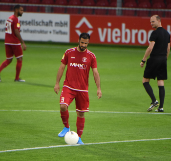 09.08.2019 hn Air Sportpark Dreieich Hessenliga Saison 2019/2020 SC Hessen Dreieich gegen FC Hanau 93 Gavric Ljubisa (Hanau) *** Foto:Peter Hartenfelser ****** Foto: Peter Hartenfelser