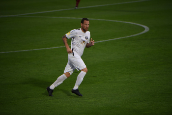 09.08.2019 hn Air Sportpark Dreieich Hessenliga Saison 2019/2020 SC Hessen Dreieich gegen FC Hanau 93 zeigt wo es lang geht Spielertrainer Michael Fink (Hanau) *** Foto:Peter Hartenfelser ****** Foto: Peter Hartenfelser