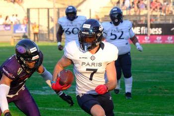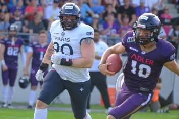 24.06.2023 xkhx Frankfurt am Main, PSD Bank Arena American Football - ELF European League of Football 2023 Frankfurt Galaxy - Paris Musketeers Robins, BerDale (3, Frankfurt Galaxy ), Vincent Buffet ( Paris Musketeers)