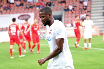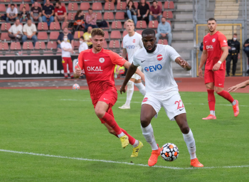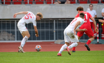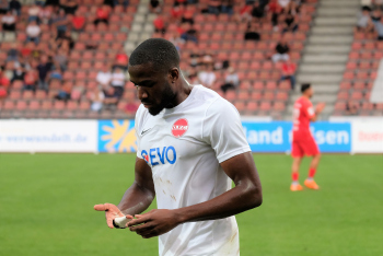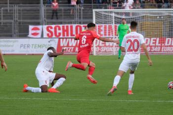 Osarenren Okungbowa (22, OFC) und Denis Huseinbašić (20, OFC), ARAM KAHRAMAN (6, KSV Hessen Kassel)