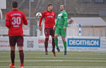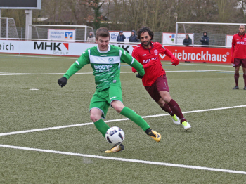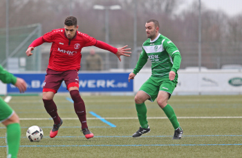 10.02.2018, xxx Fussball, Testspiel 2018, SC Hessen Dreieich Hessenliga - FV Bad Vilbel Verbandsliga Sued; v.l: Marc Schnier (SC Hessen Dreieich), Adnan Alik (FV Bad Vilbel),