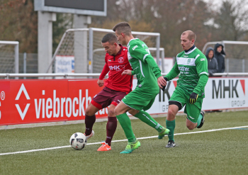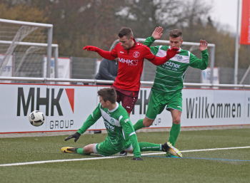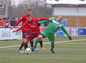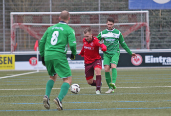 10.02.2018, xxx Fussball, Testspiel 2018, SC Hessen Dreieich Hessenliga - FV Bad Vilbel Verbandsliga Sued; v.l: Thorben Knauer (FV Bad Vilbel), Danny Klein (SC Hessen Dreieich), Kristan Pejic (FV Bad Vilbel),