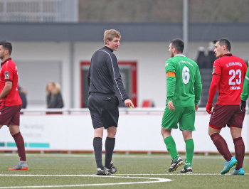 10.02.2018, xxx Fussball, Testspiel 2018, SC Hessen Dreieich Hessenliga - FV Bad Vilbel Verbandsliga Sued; v.l: Kai Nehler Schiedsrichter (FFV Oberursel), Nur Oslo Kapitaen (FV Bad Vilbel),