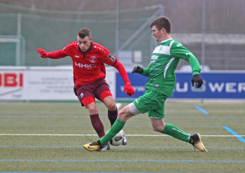 10.02.2018, xxx Fussball, Testspiel 2018, SC Hessen Dreieich Hessenliga - FV Bad Vilbel Verbandsliga Sued; v.l: Loris Weiss (SC Hessen Dreieich),