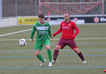 10.02.2018, xxx Fussball, Testspiel 2018, SC Hessen Dreieich Hessenliga - FV Bad Vilbel Verbandsliga Sued; v.l: Nikolai Mlasenovic (SC Hessen Dreieich), Thorben Knauer (FV Bad Vilbel),