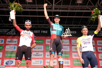 01.05.2022 xkhx Frankfurt am Main Radklassiker (Radrennen) Eschborn-Frankfurt Bergwertung Feldbarg Sieger Sam Benett (IRL) mit Fernando Gaviria (COL) und Alexander Kristoff (NOR) *** Foto Peter Hartenfelser