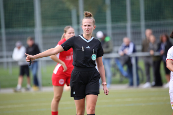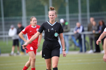 29.09.2024 xmgoodx Offenbach am Main, SANA-Sportpark Frauen Regionalliga Südwest Saison 2024/2025 Kickers Offenbach (OFC) - VfB Stuttgart Schiedsrichterin Janika Balzer ********* Foto: A2Bildagentur