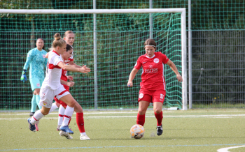 29.09.2024 xmgoodx Offenbach am Main, SANA-Sportpark Frauen Regionalliga Südwest Saison 2024/2025 Kickers Offenbach (OFC) - VfB Stuttgart Franziska Marie Riepl (OFC) gegen Laureta Temaj (VfB) n ********* Foto: A2Bildagentur