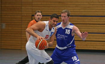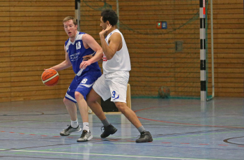 xxx 13.01.2018, Basketball Landesliga Sued 2017/2018, EOSC Offenbach - BC Neu-Isenburg; v.l. E. Babaoglu (BC Neu Isenburg), J. Jaeger (EOSC Basketball)