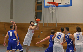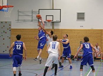 xxx 13.01.2018, Basketball Landesliga Sued 2017/2018, EOSC Offenbach - BC Neu-Isenburg; v.l. Korb durch Louis Feistkorn (BC Neu Isenburg),