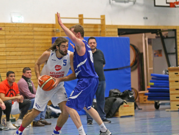 xxx 13.01.2018, Basketball Landesliga Sued 2017/2018, EOSC Offenbach - BC Neu-Isenburg; v.l. S. Schaefer (EOSC Basketball), I. Thoniatis (BC Neu Isenburg),