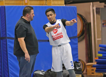 xxx 13.01.2018, Basketball Landesliga Sued 2017/2018, EOSC Offenbach - BC Neu-Isenburg; v.l. Vassili Adamoudis Trainer (BC Neu Isenburg), Malano (BC Neu Isenburg)
