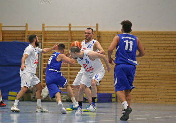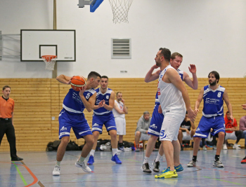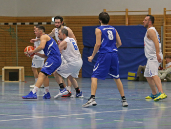 xxx 13.01.2018, Basketball Landesliga Sued 2017/2018, EOSC Offenbach - BC Neu-Isenburg; v.l. Louis Feistkorn (BC Neu Isenburg), E. Katsiakis (EOSC Basketball), I. Michalakis (BC Neu Isenburg), I. Thoniatis (BC Neu Isenburg), B. Yesilyurt (EOSC Basketball)