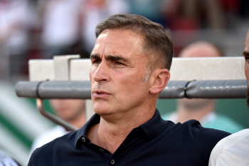 02.09.2016, xkhx Kassel, Auestadion Deutsche U21 Nationalmannschaft (DFB) L?nderspiel Deutschland - Slowakei Trainer U21 Stefan Kuntz (GER) beim Singen der Nationalhymne ***** Foto: Peter Hartenfelser