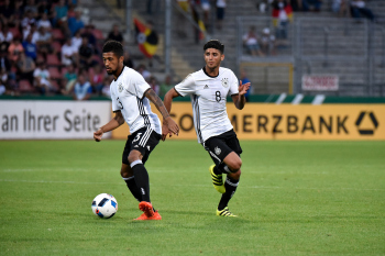 02.09.2016, xkhx Kassel, Auestadion Deutsche U21 Nationalmannschaft (DFB) L?nderspiel Deutschland - Slowakei Jeremy Dudziak(GER) rechts Mahmoud Dahoud (GER) ***** Foto: Peter Hartenfelser