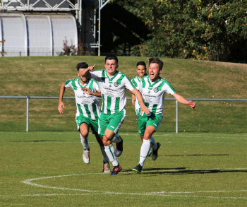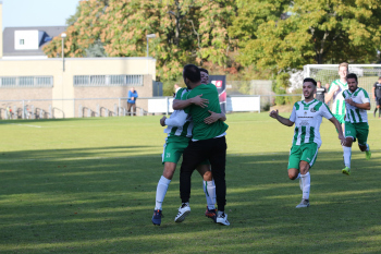 30.09.2018 xmgoodx Kreisoberliga Offenbach Saison 2018/2019 TSG Neu-ISenburg gegen SG Egelsbach Torjubel Nr.21 Atilla Duesuenceli (TSG) mit TrainerSteven Henning ****** Foto: Peter Hartenfelser