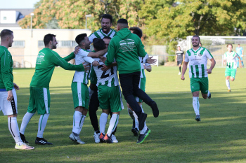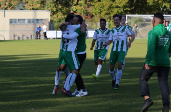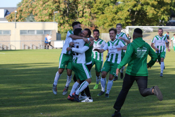 30.09.2018 xmgoodx Kreisoberliga Offenbach Saison 2018/2019 TSG Neu-ISenburg gegen SG Egelsbach Torjubel Nr.21 Atilla Duesuenceli (TSG) mit Trainer Sahin Nazim und der Mansnchaft ****** Foto: Peter Hartenfelser
