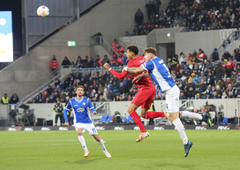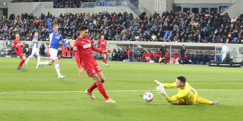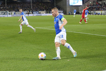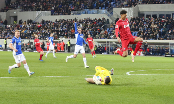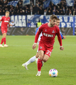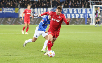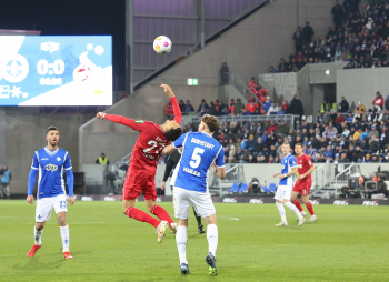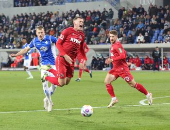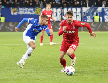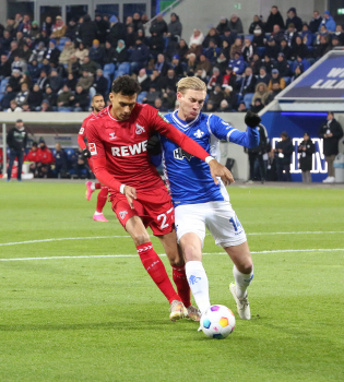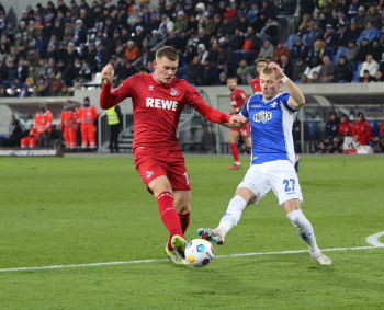 Davie Selke (1. FC Köln) gegen Christoph Klarer (14, SV98)