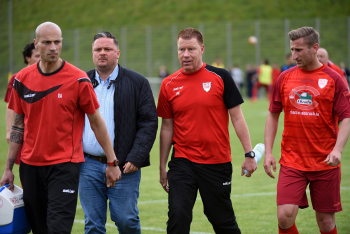 Entt?uschung bei Co-Trainer Erdo Arnatali, Trainer Trainer Peter Hoffmann und Dennis Weiland (Spvgg 03 Neu-Isenburg)