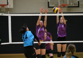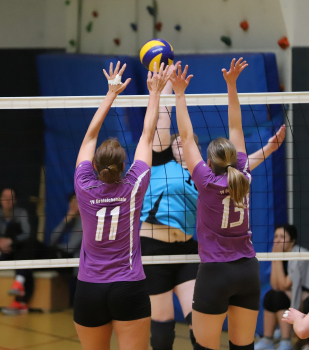 17.03.2019 Dreieich Volleyball: Frauen TV Dreieichenhain - VSG Dieburg/Münster Elling (15) VSG Dieburg/Münster Isabell Rhein und Schäfer (13) (TV Dreieichenhain) ****** Foto: Peter Hartenfelser