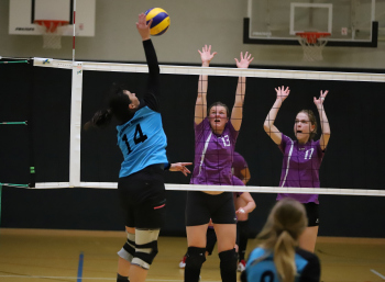 17.03.2019 Dreieich Volleyball: Frauen TV Dreieichenhain - VSG Dieburg/Münster Schäfer (VSG Dieburg/Münster) gegen Selina Schuler und Lara Walter (TV Dreieichenhain) ****** Foto: Peter Hartenfelser