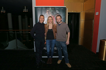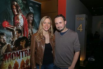 xxx, 19.01.2018, Kino Premiere, Fantasy-Actionfilm, MONTRAK, Vampir, Kino, Frankfurter CineStar Metropolis, Independent, Filmstart, v.l: Florian Freiberger als Caspar in Montrak, ,Stefan Schwenk Regisseur, Drehbuch Autor und Produzent fuer Montrak, der Film, , Nadine Petry als Nicky in Montrak, , Matthias Reichstein als Wilhelm in Montrak,