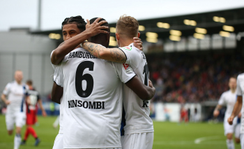 Torjubel HSV, Hamburger SV, Jubel, Freude, Emotionen, Goal celebration, David Kinsobi (HSV) erzielt das Tor zum 1:0