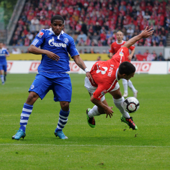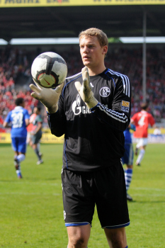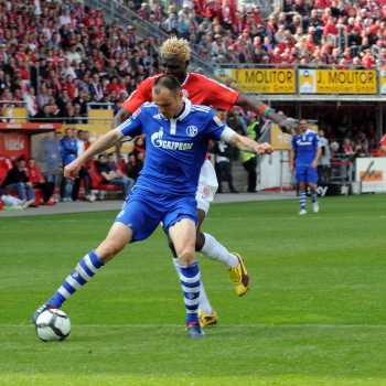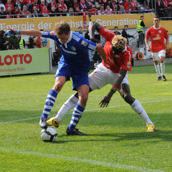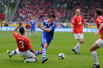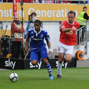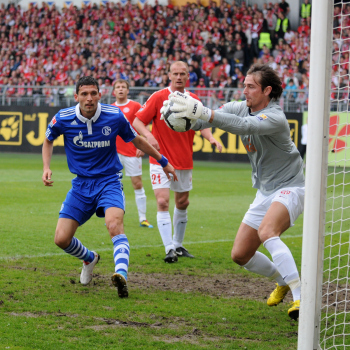 08.05.2010, 1. Bundesliga, 34. Spieltag: 1. FSV Mainz 05 : FC Schalke 04, Kevin Kuranyi (Schalke) vs Torwart Heinz M?ller (Mainz), hinten Miroslav Karhan (Mainz)