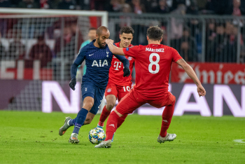 Lucas Rodrigues Moura (Tottenham Hotspurs) und Javier Martinez (FC Bayern Muenchen). Deutschland, Muenchen, 11.12.2019, FuBa, UEFA Champions League, Matchday 6: FC Bayern Muenchen vs Tottenham Hotspur, Allianz-Arena *** Quelle: Hartenfelser, hoehere Aufloesung auf Anfrage, Verwendung honorarpflichtig, Belegexemplar erbeten IBAN: DE04 5055 0020 0112 0515 70 SWIFT/BIC HELADEF10FF UST-Nummer 3582501720 MWST-Satz 7%.