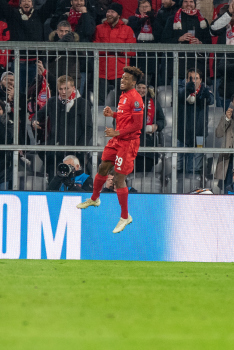 Torjubel des Torschützen Kingsley Coman (FC Bayern Muenchen). Deutschland, Muenchen, 11.12.2019, FuBa, UEFA Champions League, Matchday 6: FC Bayern Muenchen vs Tottenham Hotspur, Allianz-Arena *** Quelle: Hartenfelser, hoehere Aufloesung auf Anfrage, Verwendung honorarpflichtig, Belegexemplar erbeten IBAN: DE04 5055 0020 0112 0515 70 SWIFT/BIC HELADEF10FF UST-Nummer 3582501720 MWST-Satz 7%.