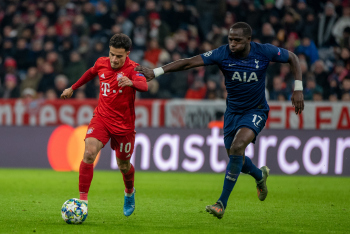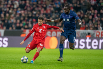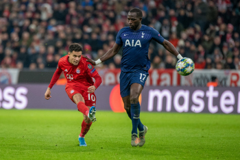 Philippe Coutinho (FC Bayern Muenchen) und Moussa Sissoko (Tottenham Hotspurs). Deutschland, Muenchen, 11.12.2019, FuBa, UEFA Champions League, Matchday 6: FC Bayern Muenchen vs Tottenham Hotspur, Allianz-Arena *** Quelle: Hartenfelser, hoehere Aufloesung auf Anfrage, Verwendung honorarpflichtig, Belegexemplar erbeten IBAN: DE04 5055 0020 0112 0515 70 SWIFT/BIC HELADEF10FF UST-Nummer 3582501720 MWST-Satz 7%.
