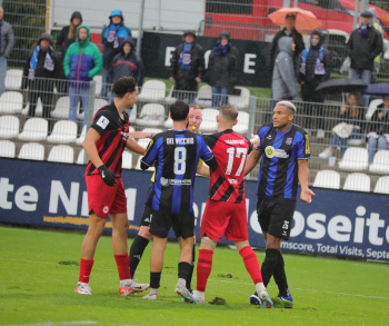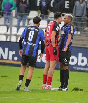 Noah Awassi (26, FSV Frankfurt) gegen IGNACIO FERRI JULIÀ (9, Eintracht Frankfurt II) versuchen zu deeskalieren Marc Wachs (17, Eintracht Frankfurt II)und GIORGIO DEL VECCHIO (8, FSV Frankfurt)