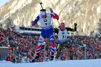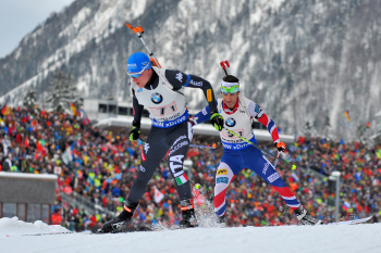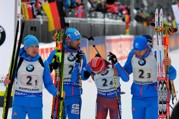 Deutschland, Ruhpolding: Sport, Wintersport, Biathlon, BMW IBU World Cup 2017 Staffel Maenner 4x7.5 km am 11.01.2017, Chiemgau-Arena.