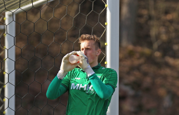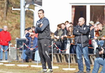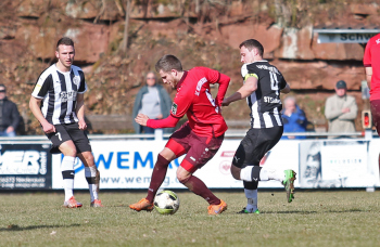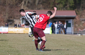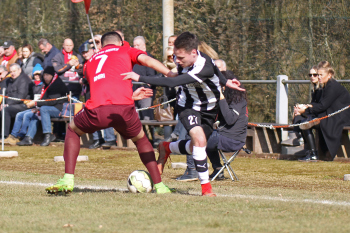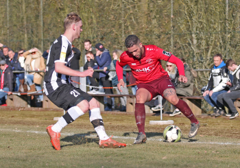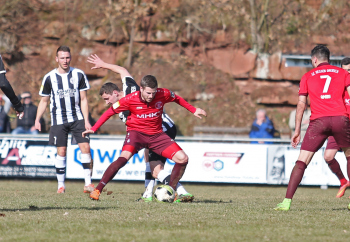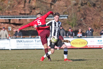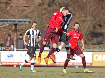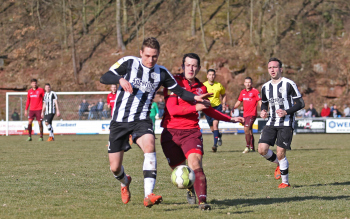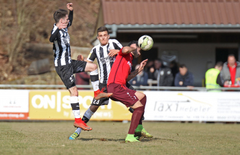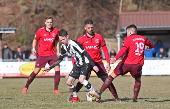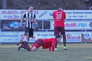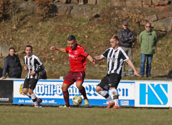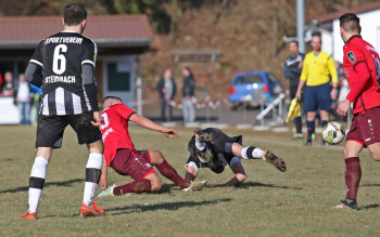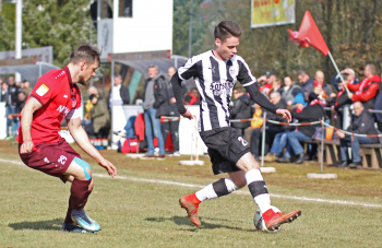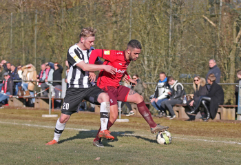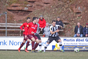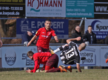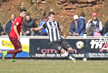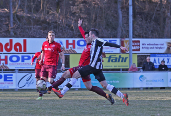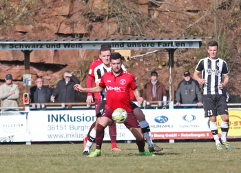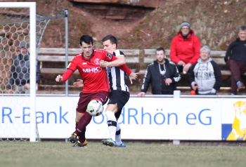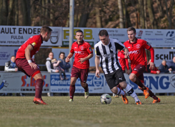 24.03.2018, xxx, Fussball, Burghaun-Steinbach Lotto Hessenliga, SV Steinbach - SC Hessen Dreieich, emspor v.l. Ljubisa Gavric (SC Hessen Dreieich), Nikolai Mlasenovic (SC Hessen Dreieich), Florian Muenkel (SV Steinbach), Daniel Henrich (SC Hessen Dreieich),