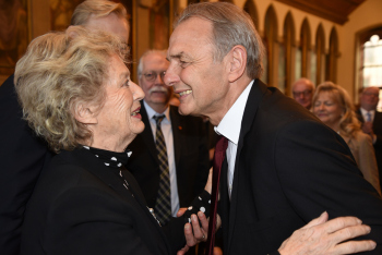 10.02.2020 Frankfurt am Main, Römer Eintracht-Frankfurt Legende Karl-Heinz Charly Körbel erhält Ehrenplakette der Stadt Frankfurt Bild zeigt Karl-Heinz Charly Körbel mit Ex-OB Petra Roth *** Foto Peter Hartenfelser ********* Foto: Peter Hartenfelser