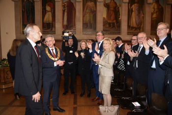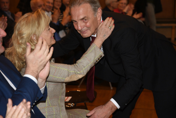 10.02.2020 Frankfurt am Main, Römer Eintracht-Frankfurt Legende Karl-Heinz Charly Körbel erhält Ehrenplakette der Stadt Frankfurt Bild zeigt Karl-Heinz Charly Körbel standing Ovations ua. intracht Frankfurt Vorstand Ael Hellmann und Ehefrau Margit *** Foto Peter Hartenfelser ********* Foto: Peter Hartenfelser