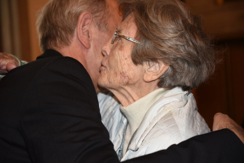 10.02.2020 Frankfurt am Main, Römer Eintracht-Frankfurt Legende Karl-Heinz Charly Körbel erhält Ehrenplakette der Stadt Frankfurt Bild zeigt Karl-Heinz Charly Körbel mti Eintrachtlegende Ilse Bechthold *** Foto Peter Hartenfelser ********* Foto: Peter Hartenfelser