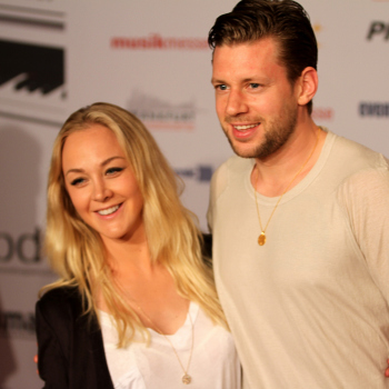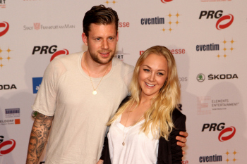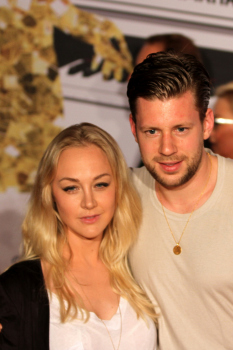 14.04.2015, Frankfurt, Festhalle PRG Live Entertainment Award 2015 (LEA) VIP au dem Roten Teppich, red Carpet Eintracht Frankfurts Fussballer Marco Russ mit Ehefrau Janina ********** Foto: A2/Hartenfelser