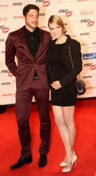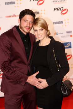 14.04.2015, Frankfurt, Festhalle PRG Live Entertainment Award 2015 (LEA) VIP auf dem Roten Teppich, red Carpet Fussballspieler Tim Kister (SV Sandhausen) mit seiner schwangeren Frau Topmodell Yvonne Schr?der-Kister ****** Foto: A2/Hartenfelser