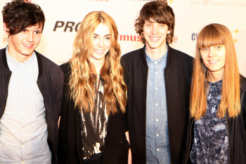 14.04.2015, Frankfurt, Festhalle PRG Live Entertainment Award 2015 (LEA) VIP auf dem Roten Teppich, red Carpet Musikband Tonbanger?t bestehend aus Isa und Sophia Poppensieker, Ole Specht ,Jakob Sudau ****** Foto: A2/Hartenfelser