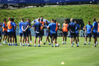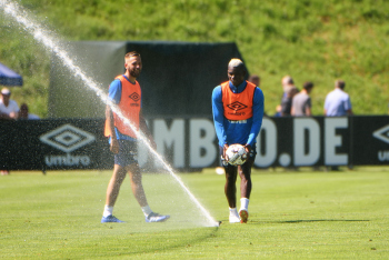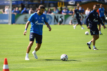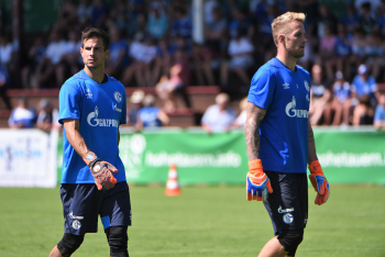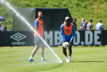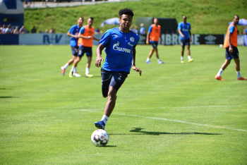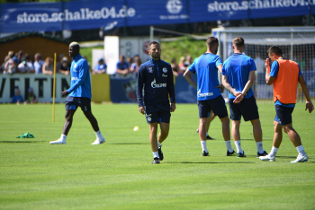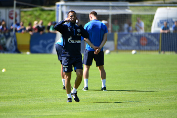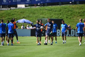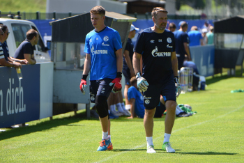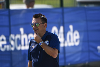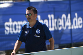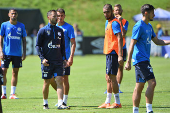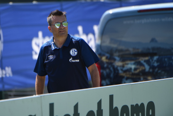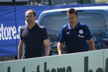 die Mannschaft mit Trainer Domenico Tedesco und Co-Trainer Peter Perchtold (Schalke)