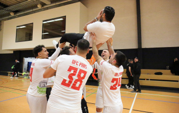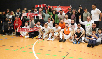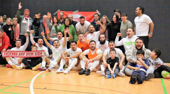 05.02.2023Offenbach am Main, FUTSAL-Regionalliga Süd - Saison 2022/2023 FUTSAL OFC/Pars - SGM TSV Weilimdorf II/SV Stuttgarter Kickers 2 Ziel Aufstieg in die Futsal-Bundesliga Jubel über die Meisterschaft bei Spielern und Trainer Sasan Tabib ***** Foto: A2Bildagentur Hartenfelser