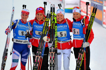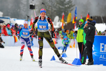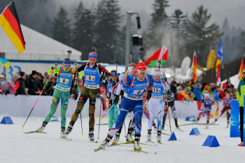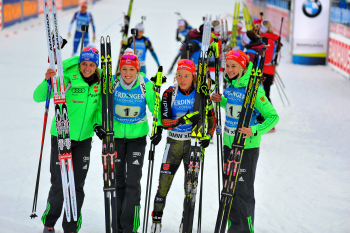 Deutschland, Ruhpolding: Sport, Wintersport, Biathlon, BMW IBU World Cup 2017 Staffel Frauen 4x6km am 12.01.2017, Chiemgau-Arena.