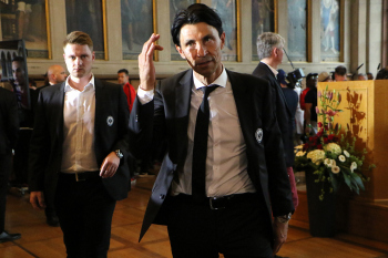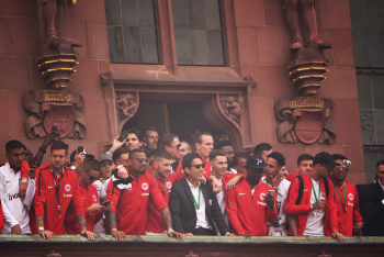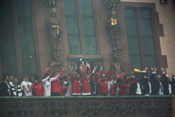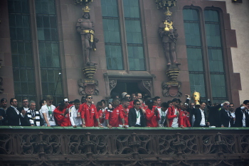 auf dem Römerbalkon u.a. Boateng, Kevin Prince (17, Eintracht Frankfurt), Rebic, Ante (4, Eintracht Frankfurt) Hasebe, Makoto (20 Eintracht Frankfurt)