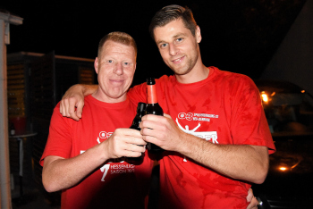 08.06.2017 Neu-Isenburg, Sportpark Spvgg. 03 Neu-Isenburg feiert den Aufstieg in die Hessenliga Erfolgsduo Trainer Peter Hoffmann (Spvgg 03 Neu-Isenburg) und Kapit?n Marco Betz (5, Spvgg 03 Neu-Isenburg) *** Foto: Hartenfelser