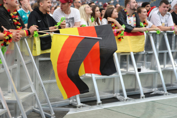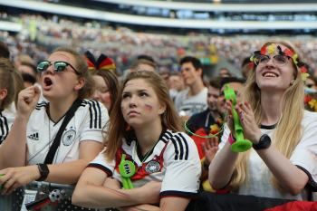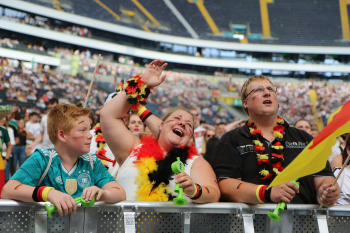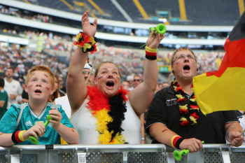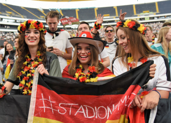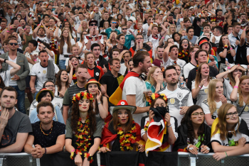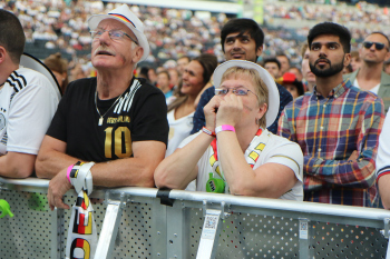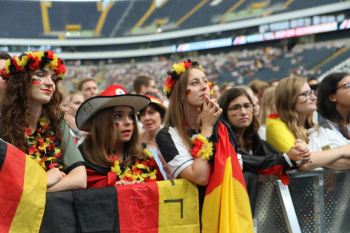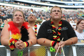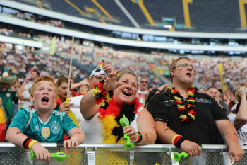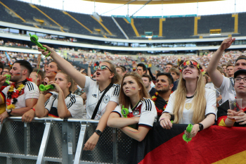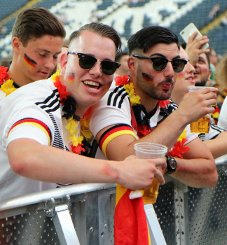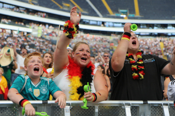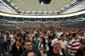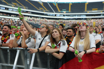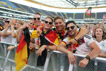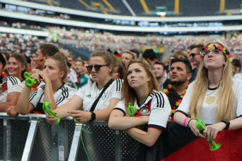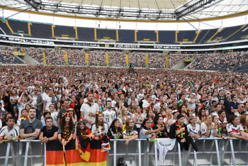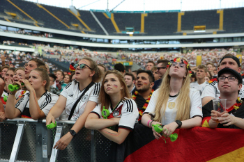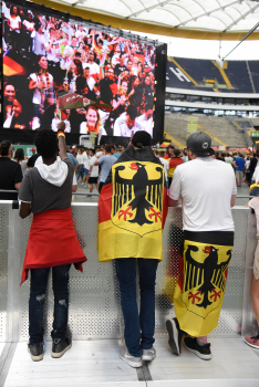 7.06.2018 Frankfurt am Main, Commerzbankarena Public viewing WM 2018 Deutschland gegen Mexiko Fans Fahnen Tröten *** Foto: Peter Hartenelser