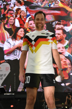 7.06.2018 Frankfurt am Main, Commerzbankarena Public viewing WM 2018, Fans Deutschland gegen Mexiko Moderator Daniel Fischer heizt den Fans ein *** Foto: Peter Hartenelser