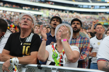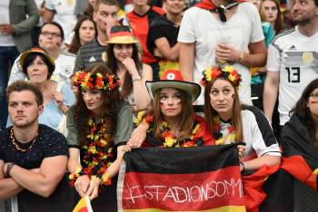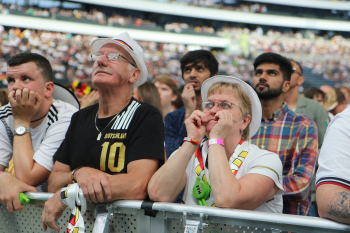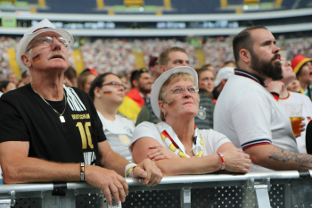 7.06.2018 Frankfurt am Main, Commerzbankarena Public viewing WM 2018 Deutschland gegen Mexiko Fans Fahnen Tröten Ernüchterung bei den Fans der Deutschen Nationalmannschaft *** Foto: Peter Hartenelser